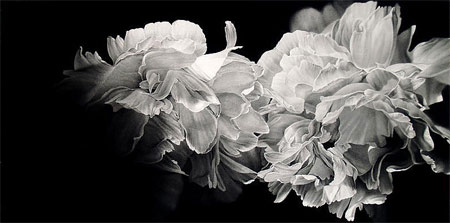 uses conte crayons on paper to recreate scenes in uber-realistic style....